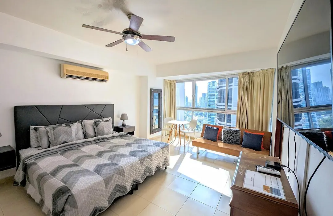 There is a fully furnished kitchen fitted with a microwave oven, a refrigerator, and kitchenware. La Luncheria offers international dishes and lies 5 minutes' walk away. The 1-room Yc L Habitacion Av Balboa - Gb2301-B is a 5-minute walk from Plaza New York bus stop. To further enhance their stay at this apartment, guests are invited to take part in fitness classes.